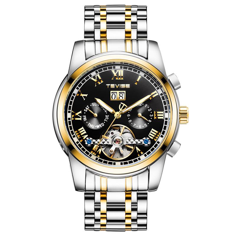 TEVISE Automatic Skeleton Mechanical Chronograph Dial Luxury Watch for Men