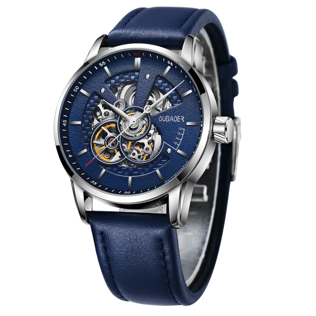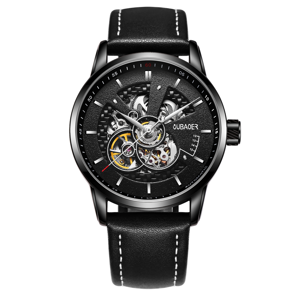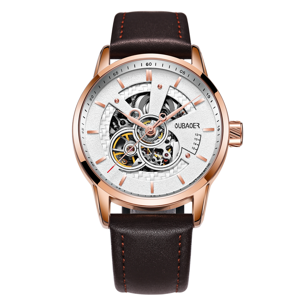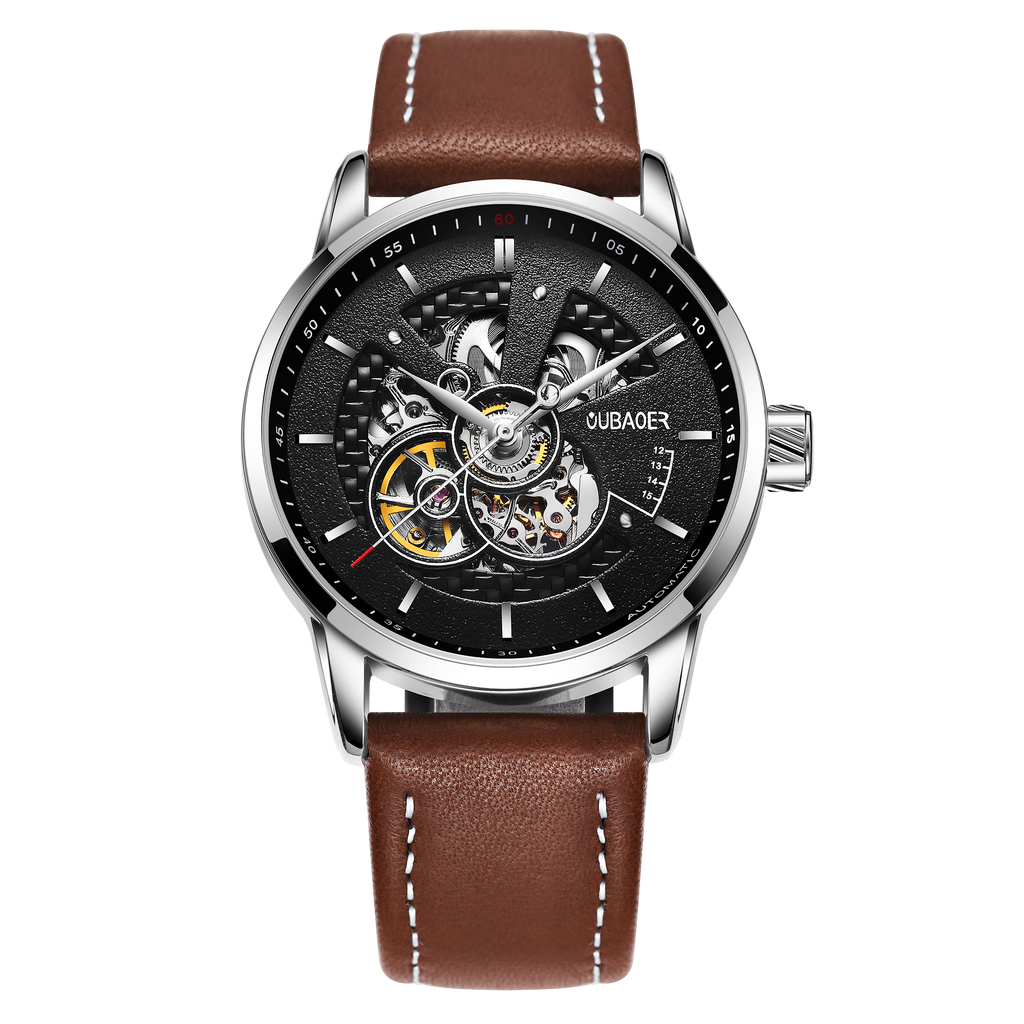 OVERFLY OUBAOER Automatic Skeleton Mechanical Luxury wrist Watch For Men