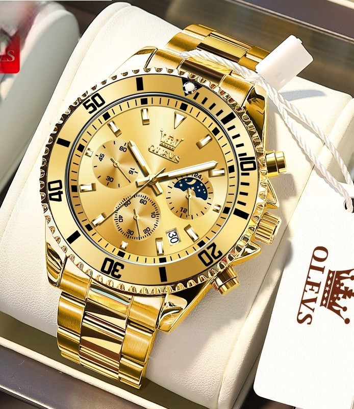 OLEVS Mens Watch Analog Chronograph Luxury Two Tone Stainless Steel Wrist Watch For Men