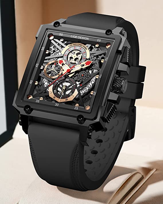 OVERFLY LIGE Mens Watch Analog Chronograph Square Dial wrist Watch for Men