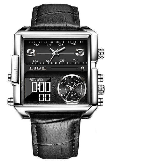 OVERFLY LIGE Mens Watch Analog Digital Dual Time Square Dial Luxury wrist Watch For Men