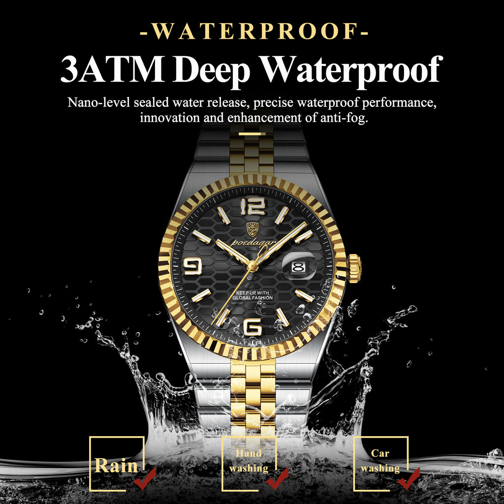 All of our watches are waterproof and you can wear them while washing hands or while it's raining as their water resistance is between 3ATM to 5ATM. However, do not wear the watches while swimming or showering, take them out when you do any of these activities.