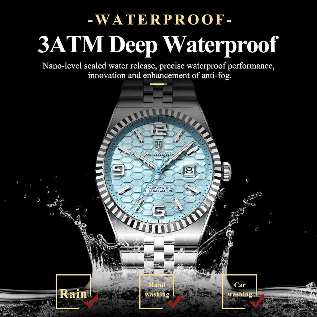 All of our watches are waterproof and you can wear them while washing hands or while it's raining as their water resistance is between 3ATM to 5ATM. However, do not wear the watches while swimming or showering, take them out when you do any of these activities.