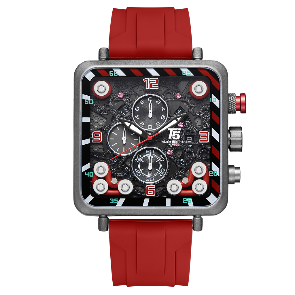 T5 Mens Watch Analog Chronograph Luxury Red Silicone Strap Wrist Watch For Men