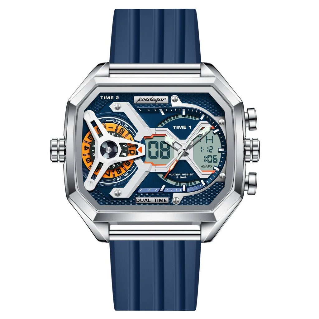 POEDAGAR Mens Dual Time Chronograph Luxury Watch Wrist Watch For Men Analog-Digital Watch